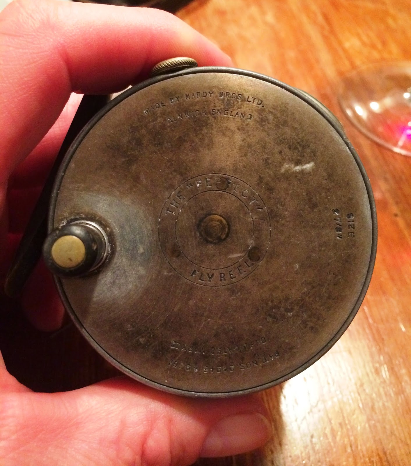 Last Saturday evening I was at a friend's for dinner, and afterwards, Laurel pulled out a bunch of her late husband's tackle to show the fly anglers among us. He mostly fished for salmon and trout in the U.K., and most of the tackle reflected that, but there were a few gems for trout in the mix. Here's a vintage Hardy "Perfect" fly reel that is "perfect" for trout.