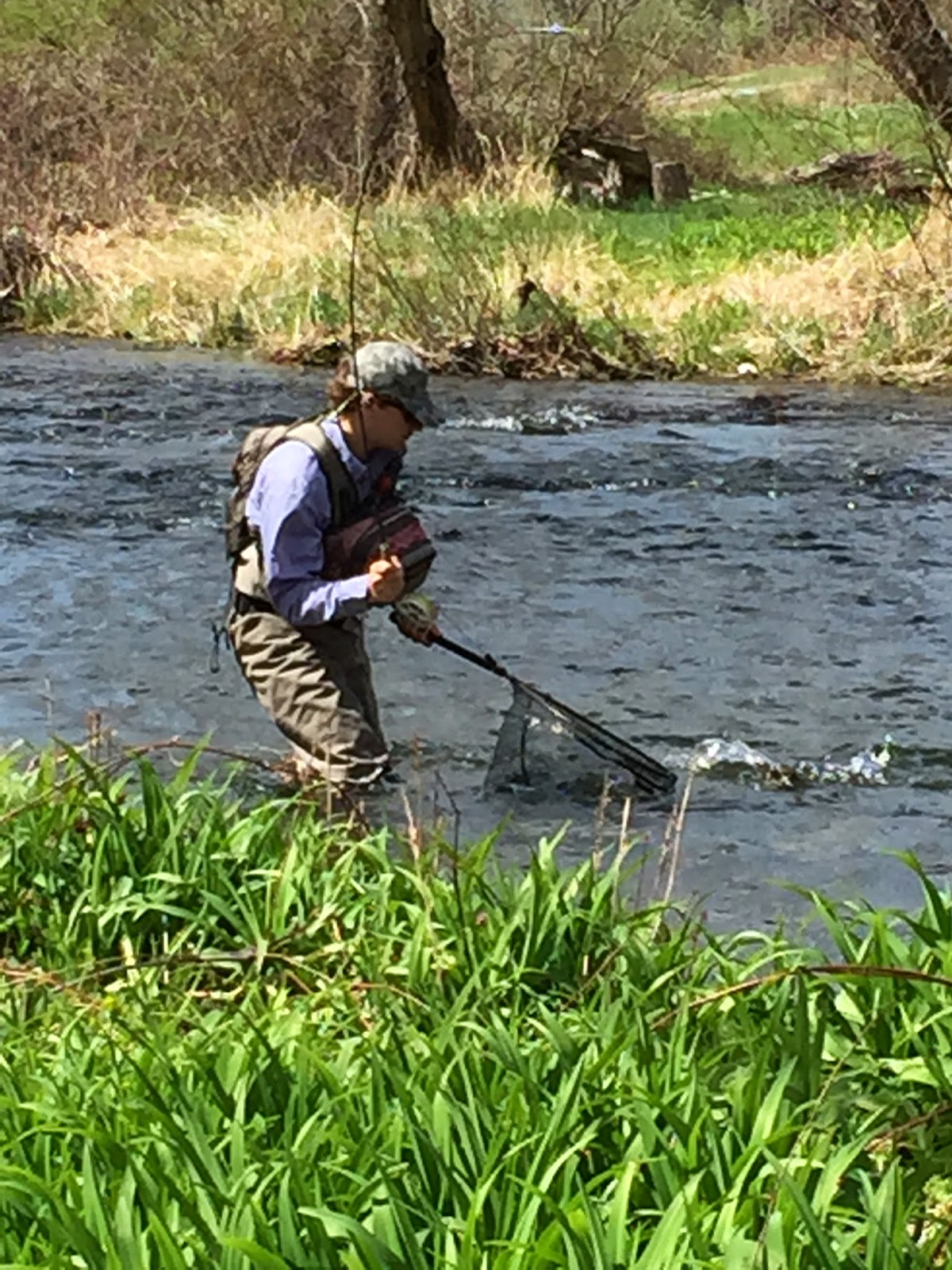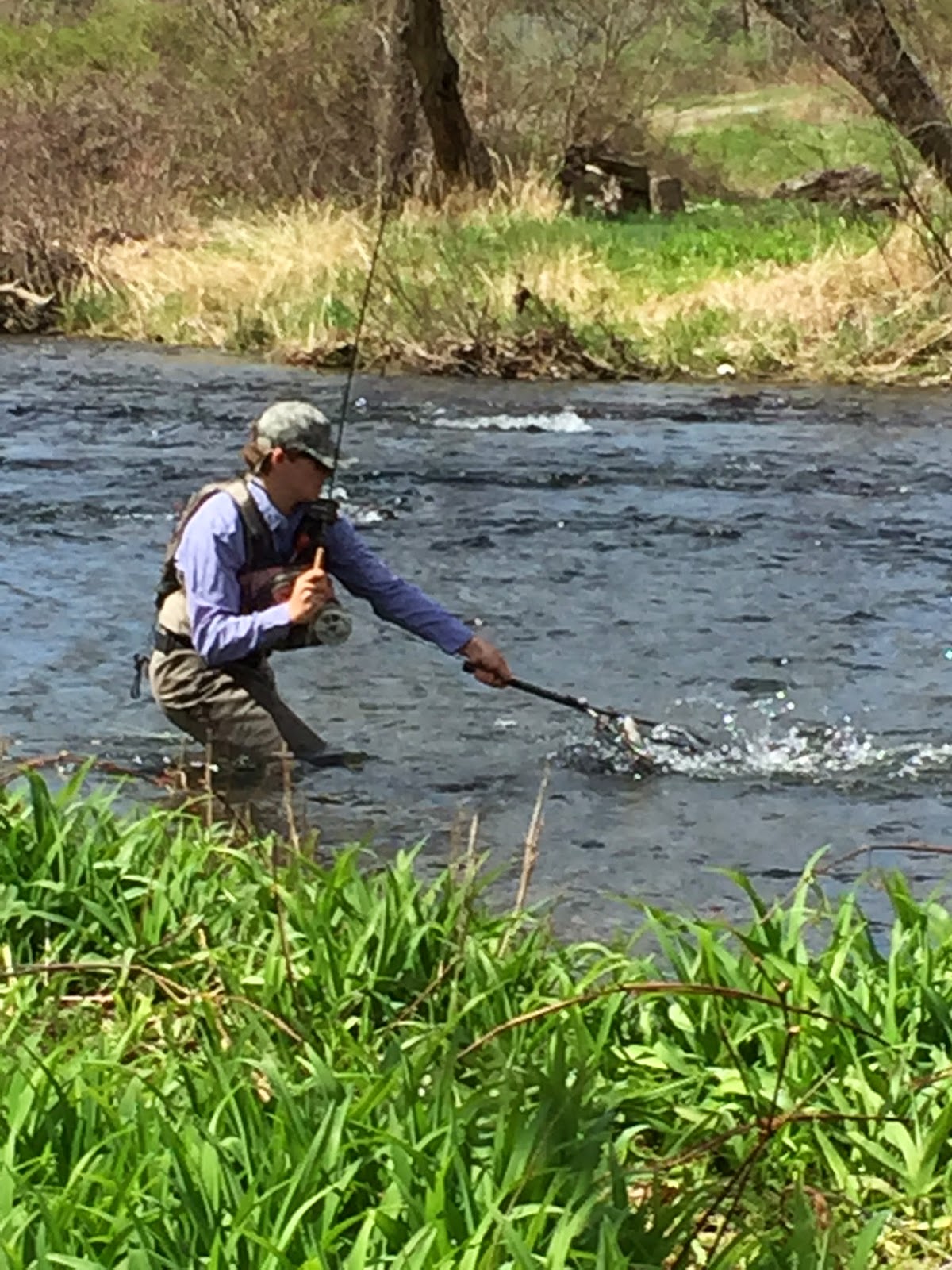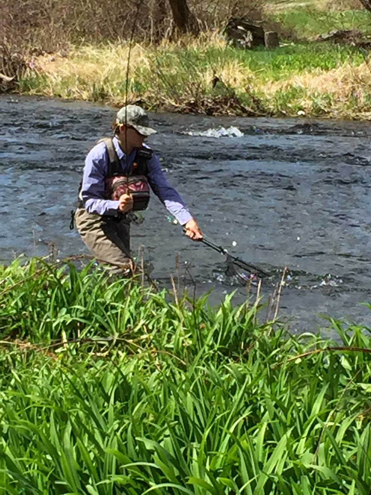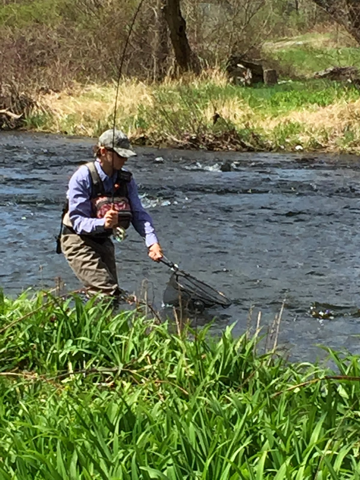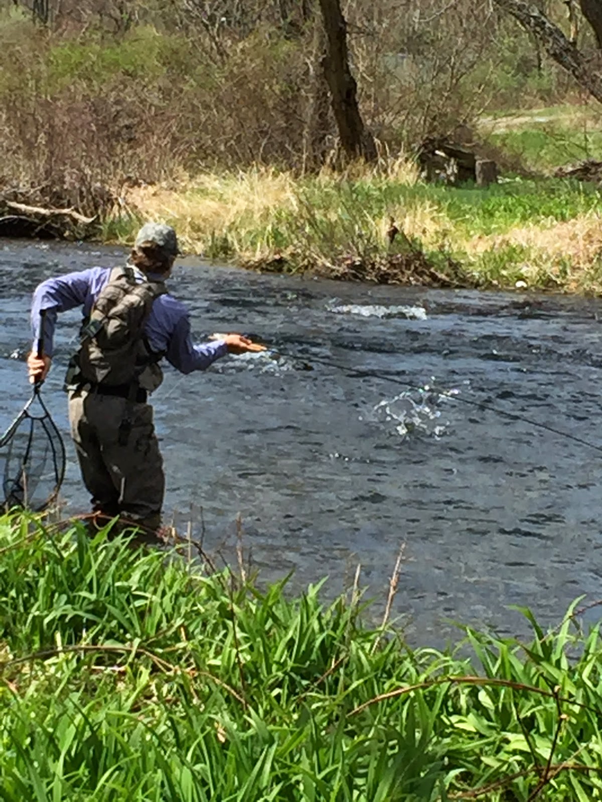 Here's Doug fighting a rainbow he hooked in a nice run next to the bank you see in the background.