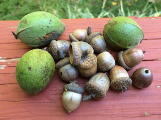 The squirrels and other nut eating animals must be very happy this year as the bounty of acorns, hickory nuts, walnuts and chestnuts is about as great as I have seen in many years. If you read the Farmer's Almanac, it will tell you that this is a harbinger of a severe winter, as the thinking goes that nature anticipates the future - trees bear more fruit, animals have thicker fur, pigs gathering sticks, the height of the hornets nests, the narrow width of the red band on a woolly worm, etc.