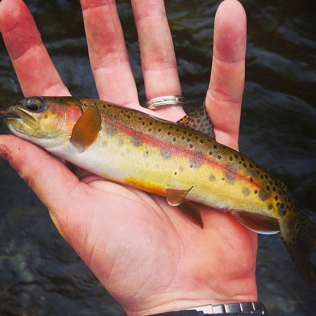 In this part of the country, very little fly fishing is going on thanks to it being the dead winter, so to speak. In the mountains of North Carolina, it's a different story as you can see here. One of Doug's friends sent him this photo of one of the trout he caught today, and you may recall that Doug calls these southern gems "the most beautiful trout in the world". It's easy to see why.