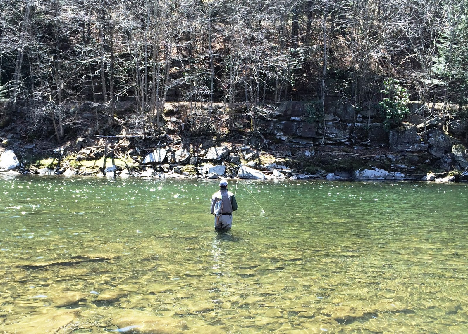 My son Matt and I went up to the Catskills last weekend to spend a couple of days fishing with a few of my friends. We arrived on Saturday and headed straight to the East Branch of the Delaware where we met up with the rest of the gang. The river was a little low, clear and cold; the weather was cloudy, cool, and a fierce wind ripped through the river valley relentlessly. And all kinds of flies were hatching in good numbers - hendricksons, blue quills, early stoneflies and grannom caddis. Occasionally, a bug would get blown onto the water where it would be quickly gobbled up by a fish. Unfortunately, this was the exception rather than the rule, as most of the bugs that got hammered to the water surface drifted without being taken except for getting waterlogged by the little whitecaps. We went fishless, cold, and called it a day much earlier than we had hoped.