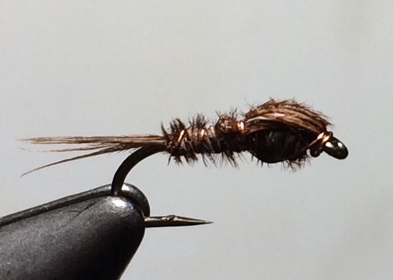 In the years since Frank Sawyer created his ubiquitous Pheasant Tail Nymph, tied using just pheasant tail fibers and copper wire, the fly has undergone several incarnations here in the USA. Many of these variations involve the addition of peacock herl for the thorax, and legs, and of course there are several beadhead pheasant tail patterns widely used.  All of these variation have one thing in common; the use of thread to bind the materials to the hook.  Sawyer's version, meant to imitate the slender, streamlined Baetis sp. nymphs so common in the chalkstreams of England, is elegant in its simplicity and very effective.  It's my preferred version, which I often fish alone on a long leader and light tippet, straight upstream.  Whether I'm fishing the shallow riffles of an Eastern freestone, or those of the Madison River, the fly produces.