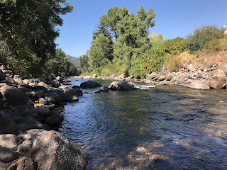 I know it sounds like it was easy fishing, and for the most part it was, but it wasn't like every cast got a strike. We got plenty of refusals, and even more drifts that were not even getting a look. These fish wanted a perfect drift! The other thing is that the wading was not easy. The bottom is strewn with round, slippery rocks of all sizes that make it much more difficult than it looks in the photos. Also, the water is very clear and as you can see below it looks fairly shallow, it is not. Right in front of where I took that photo the water was a good 2 feet deep, and across the way on the other side of that big rock, it's 4 feet or so - we know, we tried to cross there.