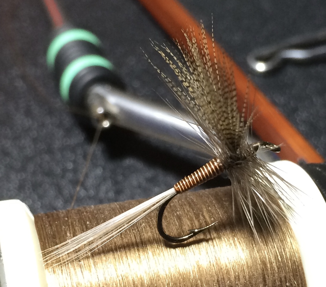 I started out with a #15 ( TMC102Y) tan Iris Caddis off the end of 2 feet of 6x tippet with a small split shot about 6-8 inches above the fly. I typically would use 5x tippet, but the water was quite low, clear and moving at a snails pace compared to what it usually is. I moved up the left bank of the river making straight upstream presentations into seams and deeper pockets; after giving the fly a second to sink, the line is stripped back at roughly the same speed as the current. In a very short while my line stopped, I lifted the rod, and was into a nice rainbow that jumped a couple of times before I netted it.