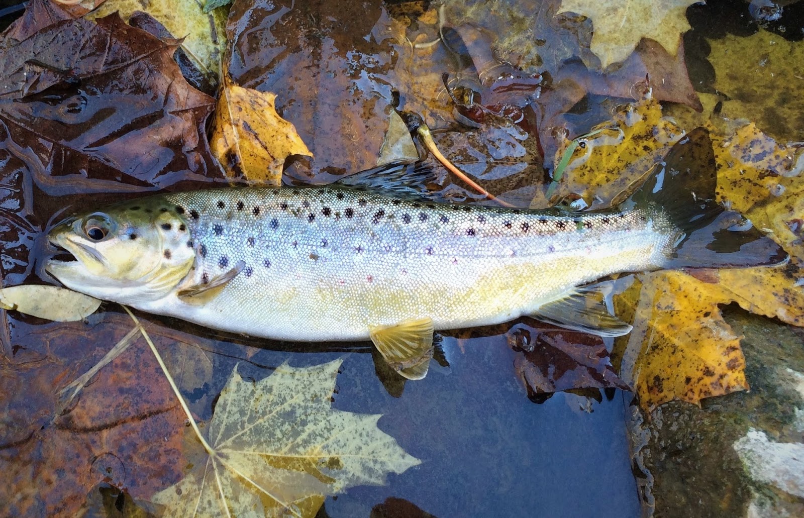 After working my way up the stream a bit without another take, I switched flies to a #20 pumpkin head midge and took off the split shot. I continued to fish upstream, covering the water from the near bank to the far bank before taking a couple of steps up and repeating the process. I hooked and landed a few, and lost one as I brought it to net. The fish were all rainbows that were 12-15 inches or so long.