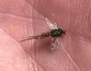 I tied a #22 trico spinner to the end of my 15 foot leader, the last of which was 30 inches of 5X tippet. I spotted what looked to be a decent fish rising in a long seam formed by a submerged rock and slowly worked my way out to where I was within a safe casting distance down and across from the feeding trout. After making a short cast to make sure my leader and fly landed on the water properly, I made a few rod strokes to let out enough line and then dropped the fly above the fish. It drifted to its right and went untouched. I made a few more casts over the fish, and it kept rising to everything but my fly.