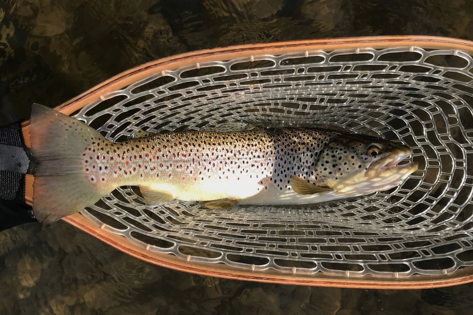 Fortunately, that was not to be, as over the next 3 hours or so fish rose throughout the river. Literally everywhere you looked, up, down and across the river there were sips, and splashes and tell-tale rings from trout feeding on top. Most of the fish were small, maybe 6-8 inches long, which were easy to make out by their quick, splashy rises. Other rises were slow, nose-dorsal-tail rises, while others, the largest fish, poked their noses out and opened wide, shut, and then disappeared in a split second leaving a series of ever widening concentric circles. The trick was finding one of these larger fish and getting close enough to cast without putting them down. Your first cast had to be good, too, or a second chance was out of the question.