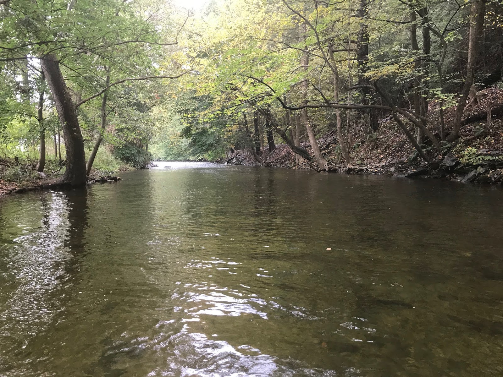 I not only managed to get close and make enough good casts to catch about 15 fish. They ranged in size from 8 inches to about 16 inches. The smaller fish were so aggressive at times that they would dart up take the fly as it hit the water above a larger fish that my fly was intended for. I also lost quite a few after hooking up as the weeds are thick that once a fish managed to get tangled up in them you couldn’t turn their heads and then the end of the line would stop shaking. I’d wade over to retrieve my fly only to find it stuck in the stem of a frond of grass and the fish long gone. All of the fish I took came on the pmd/flav snowshoe pattern and although I didn’t hook any monsters, it was a very good day wet wading in the big river taking in all that it has to offer.