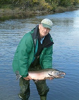 After about an hour or so I went back to the cabin to wait for the others and unpack my things. As soon as they arrived, I told them the river was ready and waiting, so Paul grabbed his rod and was off to his favorite nearby pool. It wasn’t long before he was hooked up to a nice wild fish that was hiding in a slow eddy along a very fast, heavy riffle that the fish did everything in its power to get to and use the current to its advantage.