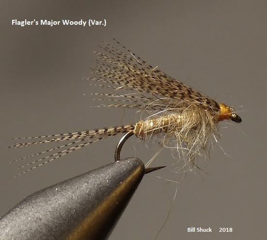 Many flies resemble "The Remerger" in construction and proportion, including some that are even older. The distinguishing feature of the "Major Woody" is that all of the materials used to tie it either are or look like wood duck.